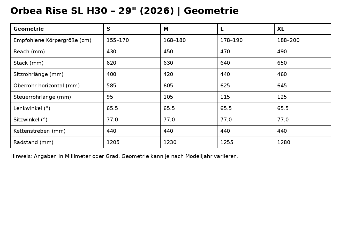 | Rahmengrößen | S / M / L / XL |