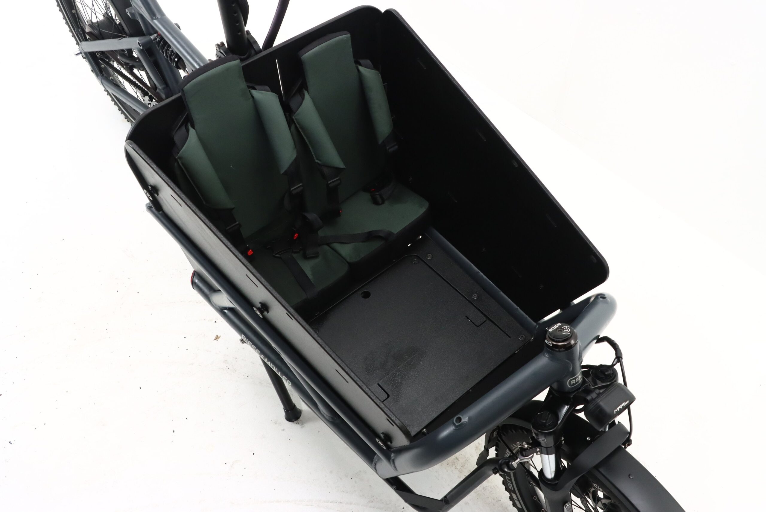 Die stufenlose Enviolo Vario Nabenschaltung in Kombination mit dem Gates Carbon Riemenantrieb garantiert leises, sauberes und nahezu wartungsfreies Fahren – ein entscheidender Vorteil im täglichen Einsatz. Das vollgefederte Fahrwerk (Vorderrad- und Hinterradfederung) erhöht Komfort und Sicherheit für Fahrer, Kinder und Ladung deutlich, selbst auf schlechten Straßen oder Kopfsteinpflaster.